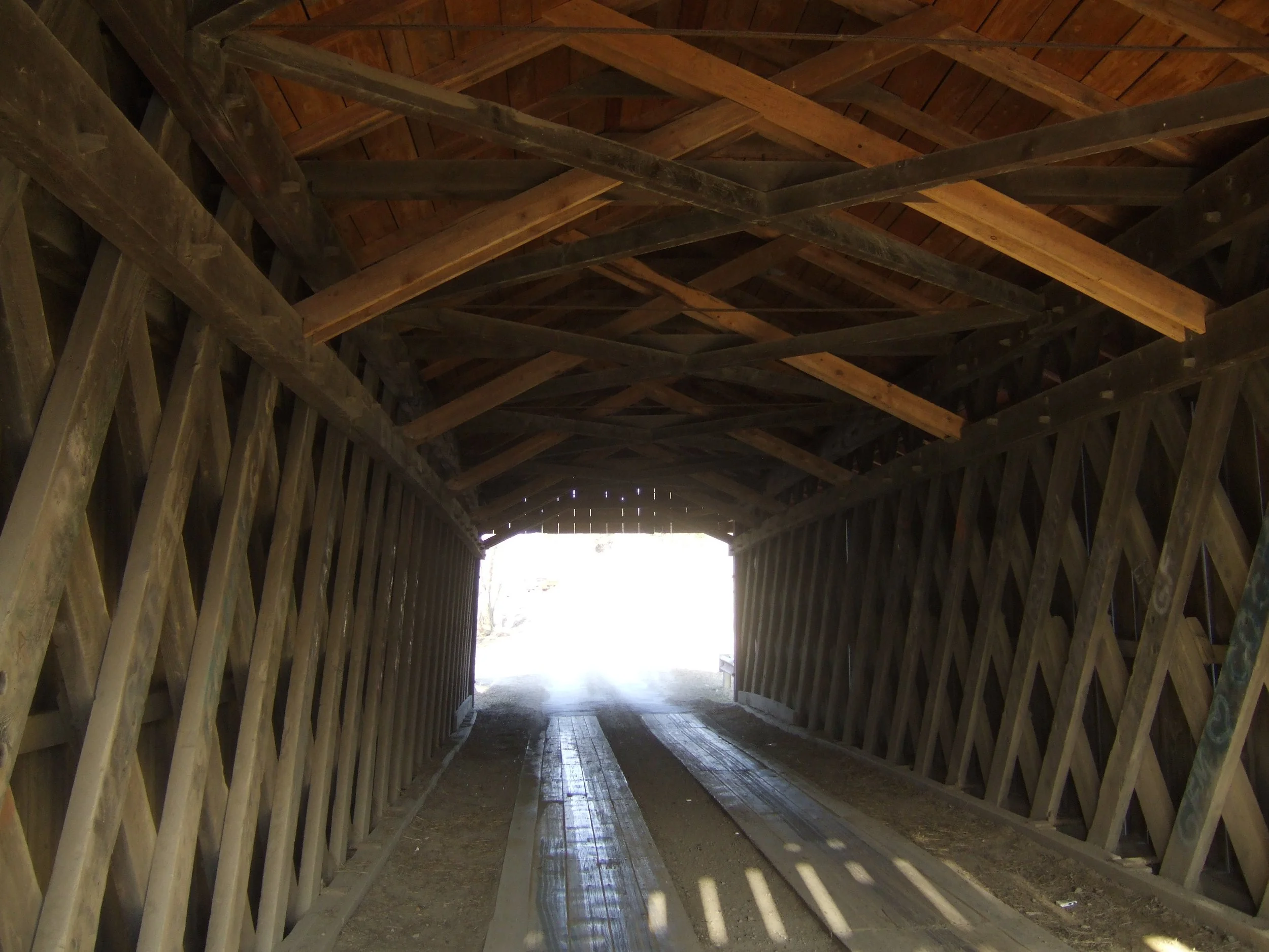 Inspired by the Waterford Covered Bridge and constructed over 322 hours for just $2,000 (plus a $800 structural engineering fee), the bridge features a flat deck design with a single off-center support, 3-inch-thick oak and hickory decking, and dimensions of 52 feet long by 10.5 feet wide and 12.5 feet high. Though not open to the public, it stands as a personal tribute to the region’s covered bridge legacy and Hazen’s ancestral ties to the area, including connections to the Middletown Farm and a historic water-powered sawmill.