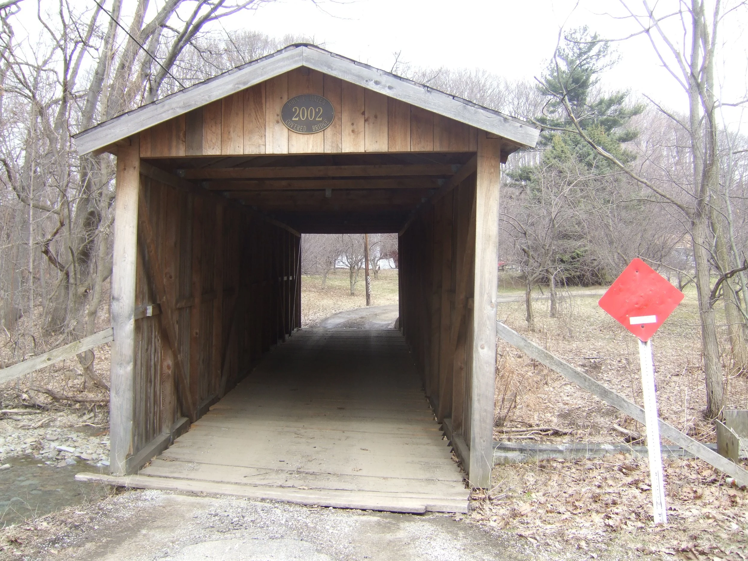 Built in 2002 by Theodore R. Hazen Sr., the John E. Hazen Covered Bridge is a handcrafted homage to Erie County’s historic spans, located on private property near Twelvemile Creek in Harborcreek Township.