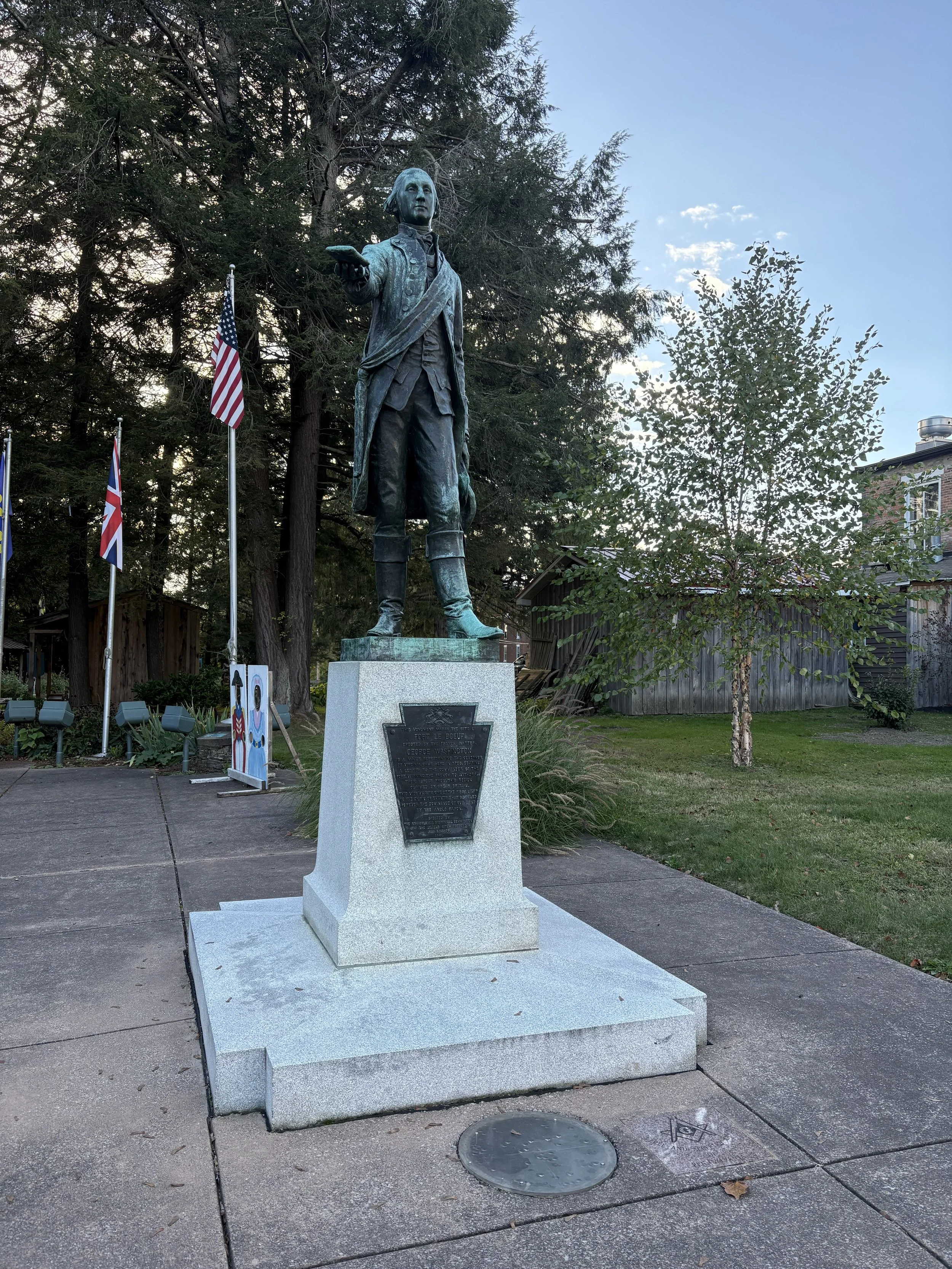 Erected in 1922, the statue honors Washington’s journey through the region during the French and Indian War.
